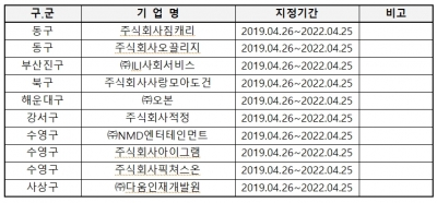 [충청뉴스큐] 부산시는 2019년 제1차 예비사회적기업 지정 및 사회적기업 일자리창출사업 공모 결과, 10개사를 예비사회적기업으로 신규 지정하고, 사회적기업 43개사에 222명의 일자리창출사업을 지원한다고 밝혔다.