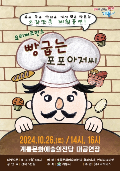 [충청뉴스큐] 계룡시가 오는 10월 26일 오후 2시, 4시 계룡문화예술의전당 대공연장에서 아동극 ‘빵 굽는 포포아저씨’를 공연한다.