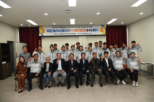 [충청뉴스큐] 부여군은 지난달 30일 부여군 여성문화회관 소회의실에서 제105회 전국체육대회 참가 선수단 출정식을 개최했다.