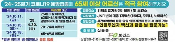 [충청뉴스큐] 청주시 보건소는 감염병에 취약한 65세 이상 어르신을 대상으로 11일부터 코로나19 무료 예방접종을 실시한다.