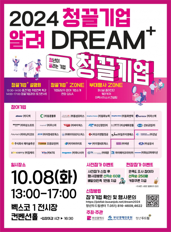 [충청뉴스큐] 부산시는 내일 오후 1시 30분 벡스코 제1전시장 컨벤션홀에서 ‘부산 청끌 기업 알려 드림+’을 개최한다고 밝혔다.