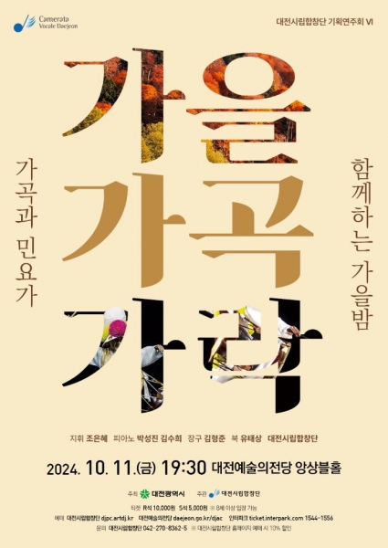 [충청뉴스큐] 대전시립합창단의 여섯 번째 기획연주회‘가을 가곡 가락’ 이 11일 오후 7시 30분 대전예술의전당 앙상블홀 무대에 오른다.