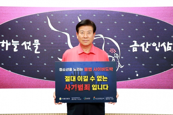 [충청뉴스큐] 박범인 금산군수는 지난 4일 서울경찰청에서 추진하고 있는 청소년 도박 근절을 위한 릴레이 챌린지에 동참했다.