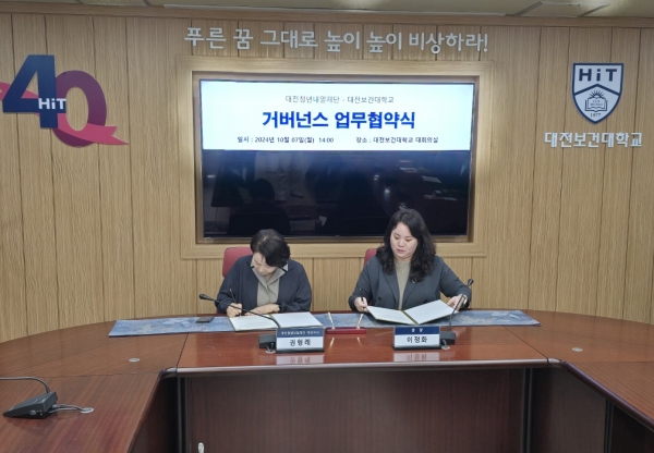 [충청뉴스큐] 대전청년내일재단과 대전보건대학교는 7일 보건대에서 ‘지역대학과 상생하는 영·유아교육 발전 및 지역청년 지원을 위한 업무협약’을 체결했다.