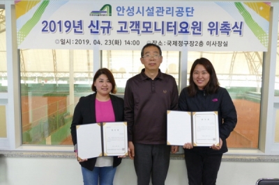 [충청뉴스큐] 안성시시설관리공단은 지난 23일 오후 2시 국제정구장 2층 이사장실에서 신규모니터요원 3명 중 2명이 참석한 가운데 2019년 신규 고객모니터요원 위촉 행사를 가졌다.