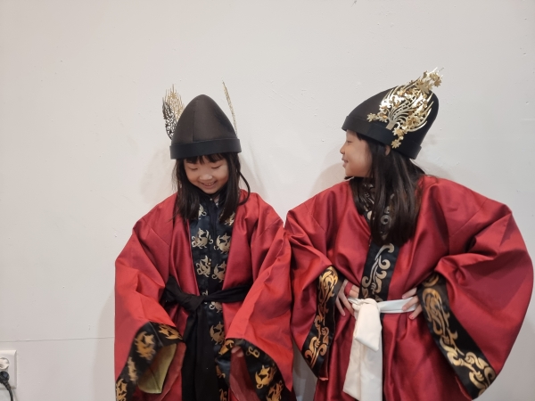 무령왕에 대한 동영상 시청, 무령왕릉 팝업북, 관 꾸미개 및 진묘수 원석 촉각체험, 누금세공기법 재현품 탐구, 왕과 왕비복 체험과 즉석 사진 촬영으로 수업을 구성했다.