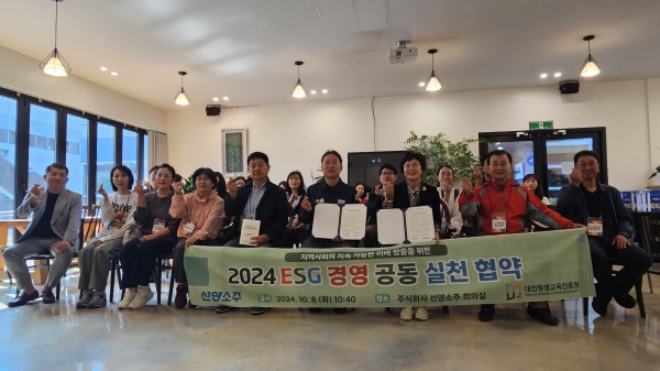 [충청뉴스큐] 대전평생교육진흥원은 ㈜선양소주와 8일 선양소주 회의실에서 ESG경영 공동 실천 협약을 체결했다.