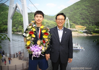 이차영 군수는 “괴산으로 귀촌한 지 벌써 5년이 지나 이제 어엿한 괴산사람으로서 우리지역의 위상을 크게 높여 주심에 감사드린다”며, “오는 10월 열리는 카타르 도하 세계기계체조선수권대회에서도 김한솔 선수가 좋은 성적을 거두길 바란다”고 격려했다.