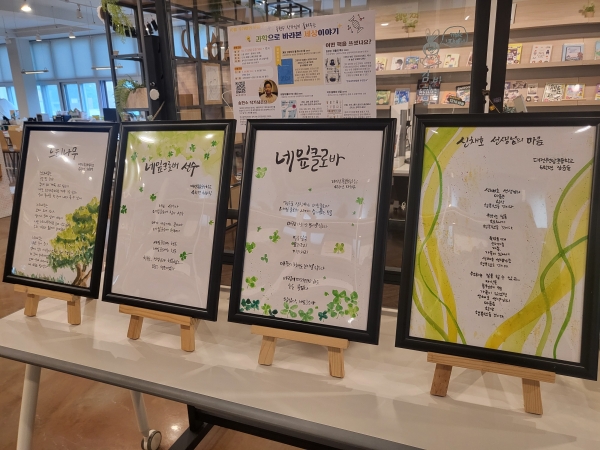 [충청뉴스큐] 대전서부교육지원청은 10월 10일부터 21일까지 대전학생교육문화원 3층 1216 해봄에서 2024학년도 사제동행 독서문학기행 참가자 41명의 시화 작품 전시회인 ‘詩-만나다 반하다 물들다’ 시화전을 개최한다고 밝혔다.