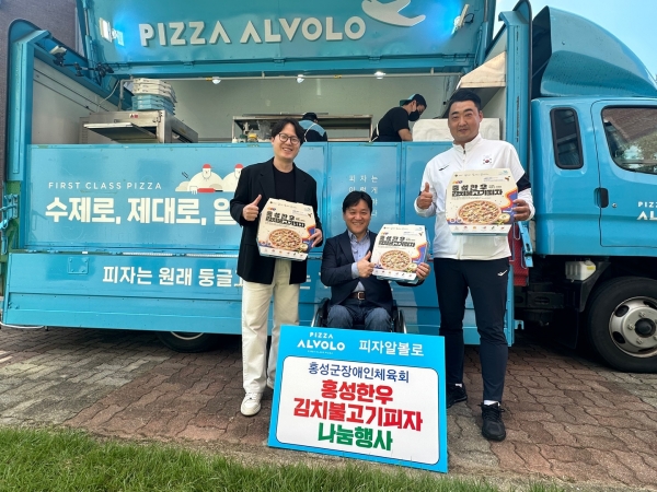 [충청뉴스큐] 한우 가격 폭락으로 울상짓는 축산농가들을 위해 홍성군과 손잡고 홍성한우 김치불고기 피자를 출시한 피자알볼로 이재욱 대표가 지역의 장애인들을 위해 피자를 제공해 지역사회에 훈훈한 미담이 되고 있다.