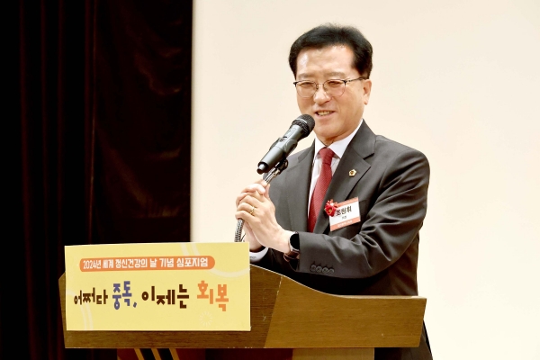 [충청뉴스큐] 대전시의회 조원휘 의장은 10일 시청 대강당에서 열린 ‘2024년 세계 정신건강의 날 기념 심포지엄’에서 “대전시의회는 시민의 정신건강 증진을 위해 관련 조례들을 촘촘하게 연구하고 개정해 현실에 맞는 건강증진 방안을 마련하겠다”고 밝혔다.