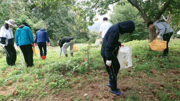 이번 행사는 수확철을 맞아 일손 부족으로 어려움을 겪는 석성면 정각리 밤 농가를 돕기 위한 것으로 밤 떨기와 줍기, 밤 포대 나르기 등 일손돕기 및 주변 환경정화 활동에 참여해 지역 농가에 일손을 보탰다.