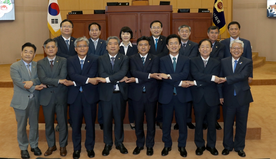 전국시․도의회의장협의회(의장 송한준) 2019년 제3차 임시회가 25일 대전 둔산동 오페라웨딩컨벤션홀에서 개최됐다. 이날 행사는 전국 17개 시․도의회의장과 관계공무원 등 100여명이 참석한 가운데 ‘대전방문의 해’ 홍보동영상 시청을 시작으로 개회사, 기념촬영, 상정안건 처리 등 순으로 진행됐다. 이번 회의에서는 대전광역시의회 김종천 의장이 제출한 ‘공공기관 이전 대상지역의 합리적 조정 촉구, 방사성폐기물 저장지역에 지역자원시설세 부과 , 지방세법 개정을 촉구하는 건의안 등 9건의 안건이 상정 처리됐다. 특히, 김종천 의장은 “국가 균형발전과 수도권 과밀화 해소차원에서 세종시와 10개 혁신도시에 153개 공공기관이 이전 완료되었음에도 불구 하고 대전과 충남은 혁신도시 지정에서 제외되어 지역인재 의무채용에서 상대적 박탈감을 받고 있다”며 공공기관 이전대상의 합리적 조정을 촉구했다. 또한, “대전 원자력 관련시설에서 다량의 방폐물 저장으로 안전관리 비용 등 많은 예산이 투입되고 시민 불안요소로 가중되고 있는데도 불구, 중앙정부로부터 지원금은 소외되어 왔다”고 말하며 “원자력 발전이나 연구원시설 등 방사성폐기물이 저장되어 있으나, 지원이 제외된 경북·전남·부산·울산 등 광역자치단체와 연대하여 지역자원시설세 부과 등 지방세법 개정의 조속한 처리와 범정부 차원의 대책 마련을 촉구하겠다”고 밝혔다.