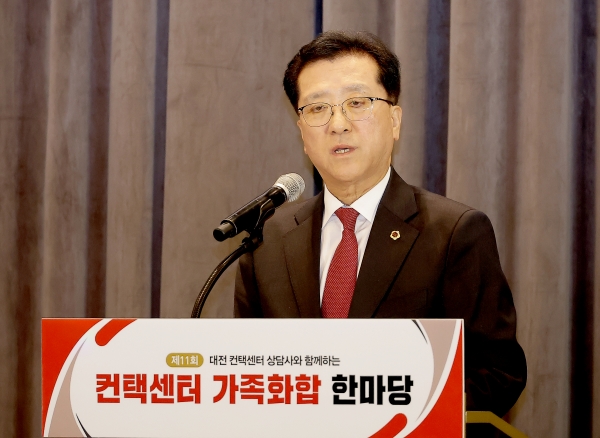 [충청뉴스큐] 대전시의회 조원휘 의장은 10일 BMK웨딩홀에서 개최된 ‘제11회 컨택센터 가족화합 한마당’에 참석해 “컨택센터 근무자들이 그간의 노고를 풀고 서로 응원하며 화합하는 자리가 되기를 바란다”며 행사 개최를 성원했다.