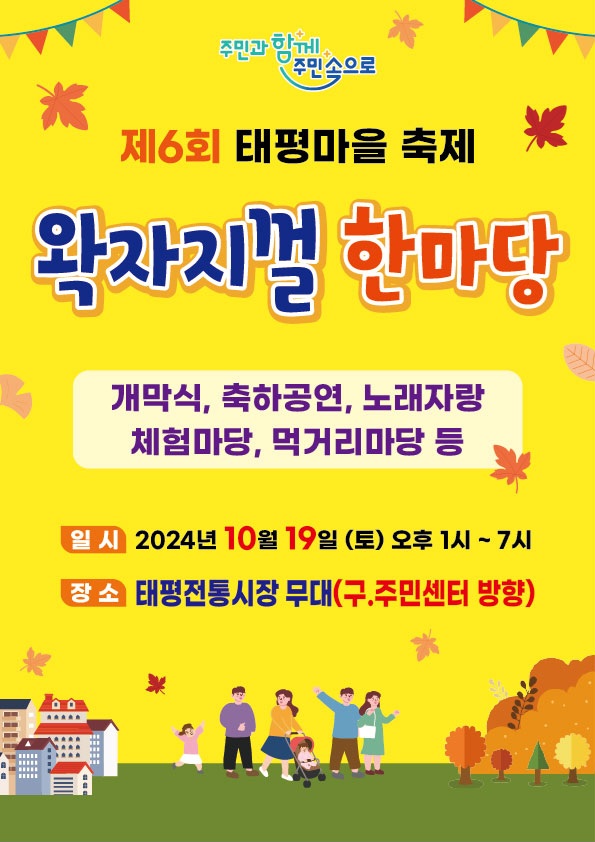 올해로 6회를 맞이한 태평마을축제는 태평1동 축제추진위원회, 태평시장상인회, 짝꿍마을어린이도서관, 상상마을사회적협동조합 등 지역 마을공동체와 주민이 함께 준비했다.