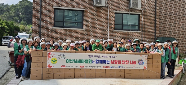 이날 새마을회의 봉사활동을 격려하기 위해 방문한 조일교 아산시장 권한대행은 “복지 사각지대를 위해 항상 애써주시고 아침 이른 시간부터 나와 봉사에 참여해 주신 새마을지도자분들께 감사드린다”며 “새마을지도자분들의 따뜻한 마음이 우리 아산시 지역사회에 스며들길 바란다”고 말했다.