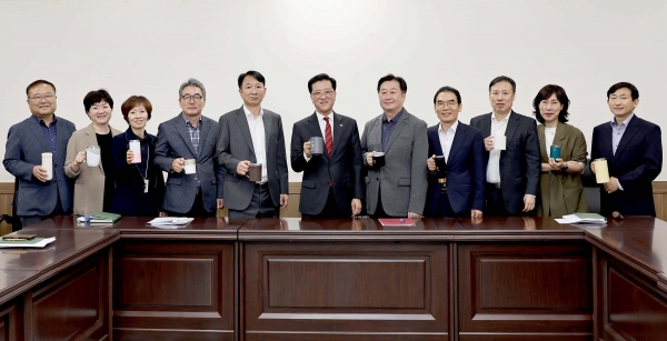 [충청뉴스큐] 대전시의회는 일회용품 사용을 줄이기 위해 작은 것부터 실천하겠다는 의지를 밝히며 14일 주간업무회의에서 개인용 다회용 컵을 사용했다.