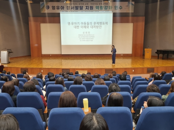 이를 위해 연세대학교 소아정신과 신의진 교수를 강사로 초청해 전반적인 영유아 정서·심리의 이해와 지원방안에 중점을 둔 강연을 진행했으며 이어 서울아이발달지원센터 박은아 센터장이 영유아 문제행동을 사례 중심으로 강의를 진행해 교사의 정서·심리 지원에 대한 교육전문가로서의 역량 강화를 도모했다.