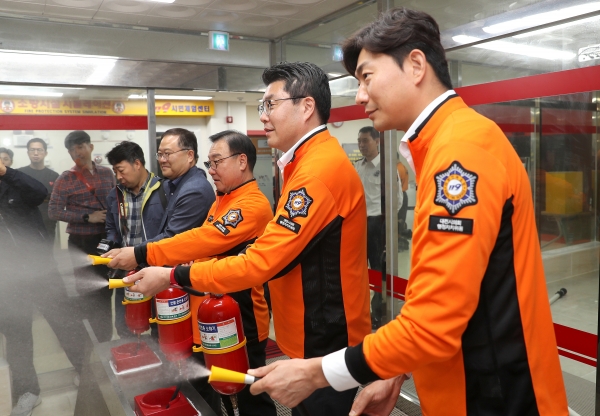 이어 119시민안전체험센터를 방문해 소화기 사용, 화재 대피, 심폐소생술, 지진 대피 훈련 등 다양한 소방 안전 체험 프로그램에 참여했다.