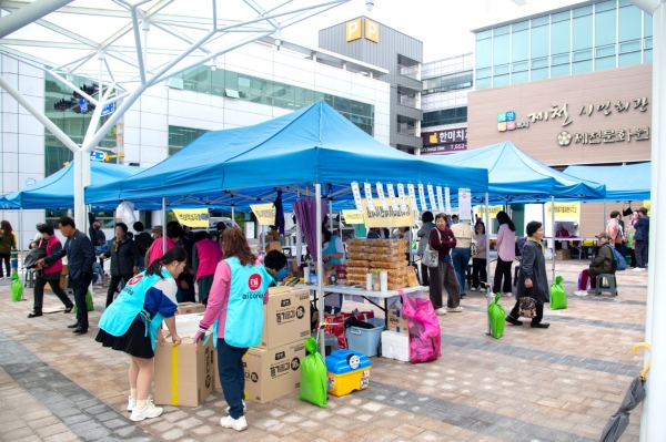 이날 행사에는 여성단체협의회 소속 단체 회원들 100여명이 참석한 가운데 농산물, 건어물, 젓갈류 등 다양한 품목을 판매하는 부스가 마련됐으며 김창규 제천시장을 비롯한 각 기관 단체장들이 방문해 물건을 구입하며 이웃사랑에 힘을 보탰다.