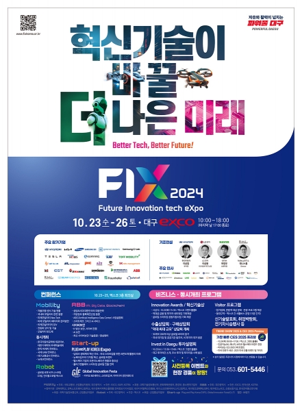 또한, 엑스코에서 출발하는 대구관광지 투어와 대구시티투어가 제공돼 FIX 2024를 통해 대구에 머무르는 관광도시로 거듭나는 계기가 될 것으로 기대된다.