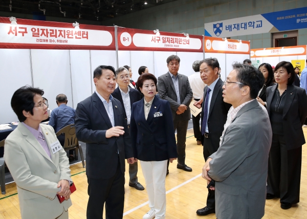 [충청뉴스큐] 대전 서구는 지난 2일 배재대학교 스포렉스홀에서 개최된 ‘2024년 하반기 대전 서구 굿잡 일자리박람회’ 가 700여명의 구직자가 참여한 가운데 성황리에 종료됐다고 밝혔다.