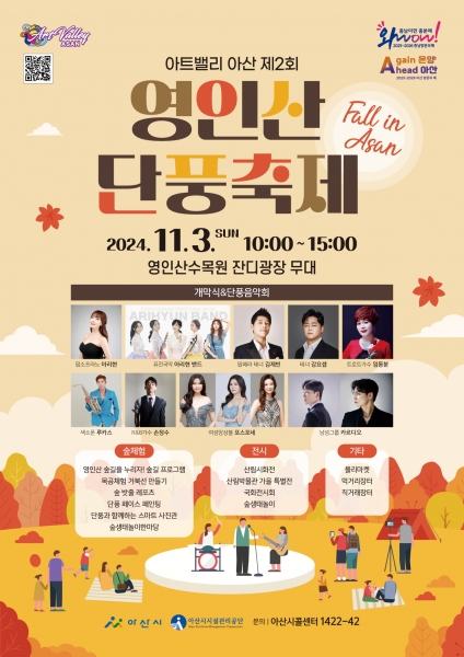 [충청뉴스큐] 아산시가 오는 11월 3일 영인산수목원 잔디광장 일원에서 아트밸리 아산 제2회 영인산 단풍축제를 개최한다.