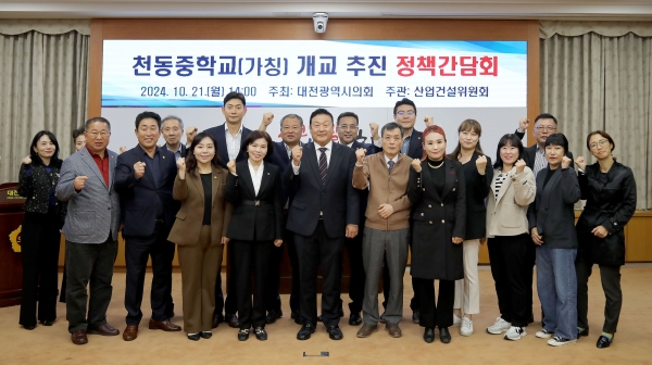 [충청뉴스큐] 대전시의회는 21일 의회 소통실에서 송인석 의원주재로 ‘천동중학교 개교 추진 정책간담회'를 개최했다.