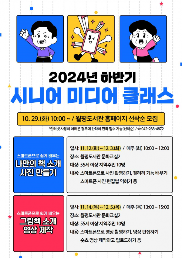 [충청뉴스큐] 대전 서구 월평도서관에서는 55세 이상 시니어 계층의 미디어 기초 함양을 위한 ‘하반기 시니어 미디어 클래스’를 11월 12일부터 운영한다.