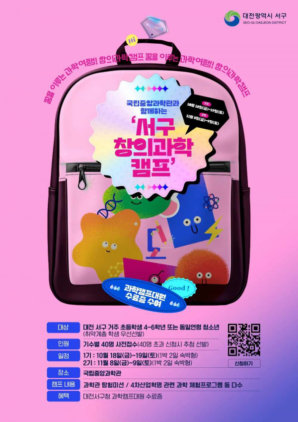 [충청뉴스큐] 대전 서구는 지난 18일부터 19일까지 ‘국립중앙과학관과 함께하는 서구 창의과학캠프'를 1박 2일간 국립중앙과학관에서 성황리에 개최했다.