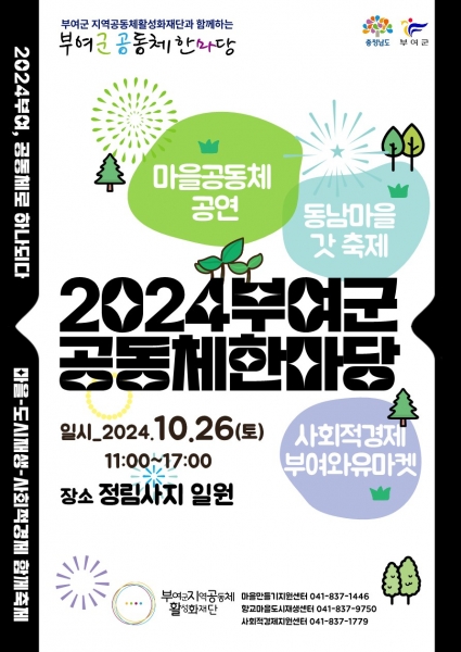 [충청뉴스큐] 부여군은 오는 26일 토요일 오전 11시부터 오후 5시까지 정림사지 일원에서 “2024 부여, 공동체로 하나되다”라는 주제로 ‘2024 부여군 공동체한마당’을 개최한다.