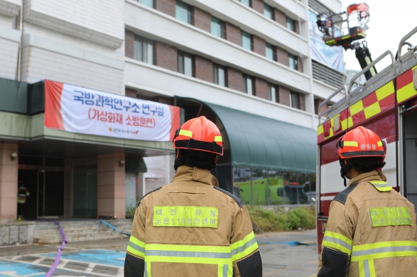 이번 훈련은 연구·실험 중 폭발로 인한 화재 및 유해화학물질 유출 상황을 가정한 화재·구조분야 팀 단위 전술훈련으로 현장에서는 △유해화학물질 유출 대응 훈련 △현장경험 부족 대원 화재진압 훈련 △화재현장지휘 전술 훈련 △차량부서 선착대장 역할, 선착대원 활동 등 초기대응 훈련 등이 진행됐다.