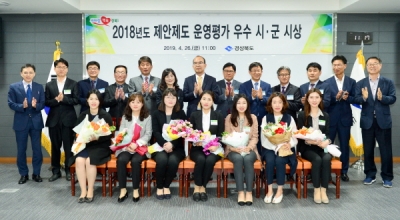 [충청뉴스큐] 경상북도는 26일 도청 회의실에서 ‘2018년도 제안제도운영 평가 우수시군 및 유공공무원’에 대한 시상식을 가졌다.