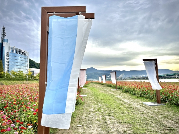 이번 꽃단지는 단순한 자연경관으로서 볼거리를 넘어 우리나라 고유의 전통 문양과 한복을 모티브로 한 테마 정원을 조성했다는 점이 특징이다.