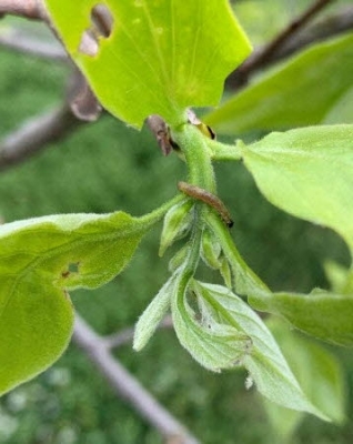 감꼭지나방의 방제는 보통 5월 중순경으로 알려져 있으나 올해는 4월 하순경으로 방제시기를 앞당겨 처리해야 한다.