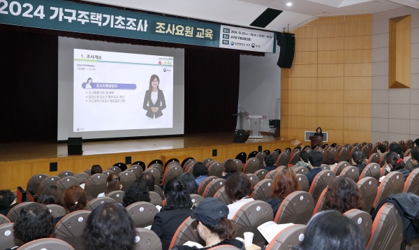 [충청뉴스큐] 대전 서구는 2024 가구주택기초조사 수행에 앞서 총 59명의 조사요원을 대상으로 구청 2층 구봉산홀에서 교육을 실시했다.