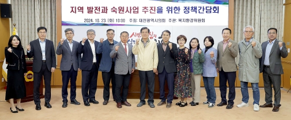 [충청뉴스큐] 대전시의회 복지환경위원회는 이한영 의원 주재로 23일 의회 소통실에서 ‘지역 발전과 숙원사업 추진을 위한 정책간담회’를 개최했다.