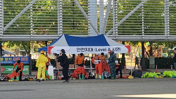 [충청뉴스큐] 대전시는 23일 엑스포시민광장에서 ‘2024년 생물테러 대응 대규모 현장 훈련’을 실시했다.