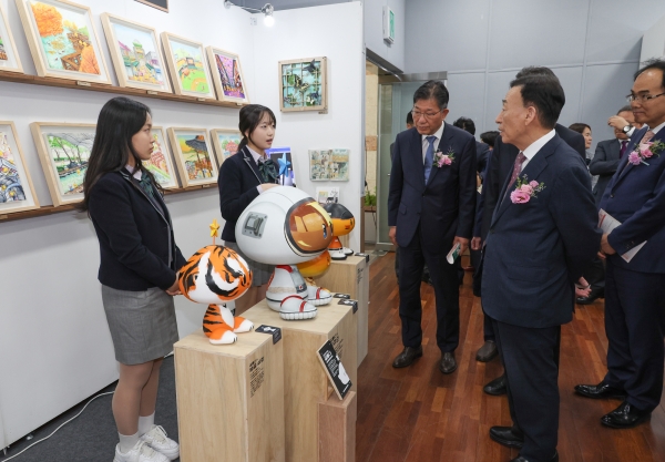 다목적실에서는 초·중·고 33팀의 작품이 전시되며 로비에서는 학생 미술실기대회 우수작과 교원 작품이 관람객을 맞이한다.