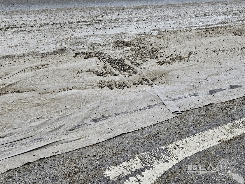 공사한 도로에는 덮개가 씌워져 있었지만 차량의 운행으로 덮개는 너덜해져 있고, 너덜해진 덮개 사이로 나온 토분과 흙으로 인해 자갈밭인지 도로인지 구분이 되질 않았다.