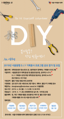 [충청뉴스큐] 서울시자원봉사센터는 대학생이 봉사활동을 기획하고 실행한 후, 평가까지 진행해 볼 수 있는 DIY 공모전 참가자를 오는 29일부터 5월 9일까지 모집한다.