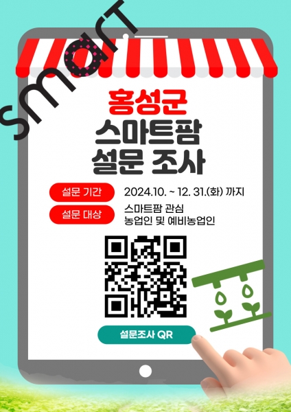 설문조사 참여는 홍성군농업기술센터 홈페이지를 통해 누구나 가능하며 특히 공공 임대형 스마트팜과 관련 사업에 관심 있는 이들의 적극적인 참여를 기대한다.