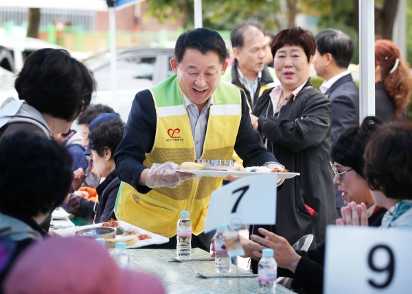 이번 행사는 재능나눔 봉사 단체와 연계한 식전 공연을 시작으로 자원봉사자들은 관내 어르신과 소외계층에게 따뜻한 한 끼를 제공하고 안부를 묻는 등 소통하는 시간을 가졌다.