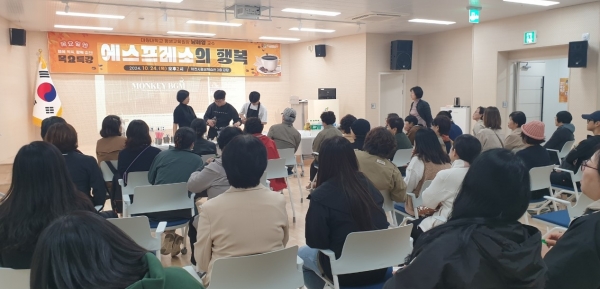 첫 번째 특강은 지난 24일 대원대학교 남혜영 교수가 강연자로 나서 ‘에스프레소의 행복’ 이라는 주제로 커피 시음과 홈 카페 시연을 포함한 커피 인문학 강의를 진행했으며 시민 50여명이 참석한 가운데 큰 호응을 받으며 성황리에 특강을 마쳤다.