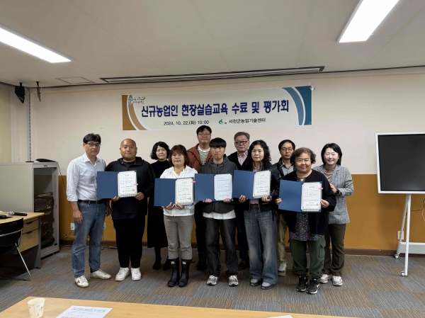 [충청뉴스큐] 서천군은 지난 22일 귀농인과 청년 농업인의 영농정착을 위한 현장실습 교육을 성공적으로 마무리하고 평가회를 열었다.