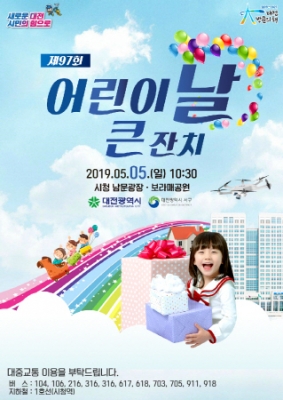 [충청뉴스큐] 대전시는 제97회 어린이 날을 맞아 내달 5일 오전 10시 30분부터 오후 4시까지 대전시청 남문광장과 보라매공원 일원에서 ‘어린이날 큰잔치’를 서구와 공동으로 개최한다.