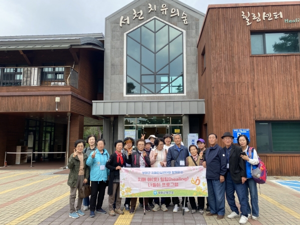 이번 나들이는 서천 치유의 숲 마음 치유 힐링캠프를 통해 아로마요법, 명상 해독 체조, 싱잉볼 명상, 건식족욕 등 다양한 체험으로 참여자의 스트레스 지수 완화와 정서적 안정의 기회를 제공했다.