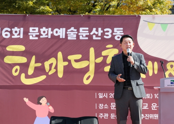 서철모 청장은 “이번 축제를 통해 주민들의 일상에 활력과 감성을 위한 좋은 시간이 되리라 생각한다“라며 ”동 주민이 하나가 되어 함께 즐길 수 있는 축제가 되도록 알차게 행사를 준비한 둔산3동 주민자치회에 감사드린다”고 말했다.