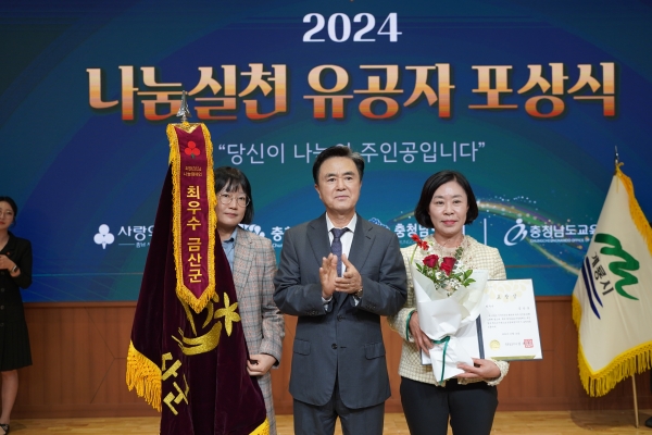 한편 금산군은 지난 25일 충남도청 대회의실에서 열린 2024 나눔실천 유공자 포상식에서 나눔 문화 확산을 위한 선도적 역할을 인정받아 3년 연속 최우수기관으로 선정됐다.