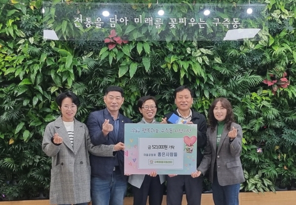 [충청뉴스큐] 대전 유성구 구즉동은 29일 마을공동체 ‘좋은사람들’[구즉마을지원센터]로부터 후원금 523,000원을 기탁받았다고 밝혔다.